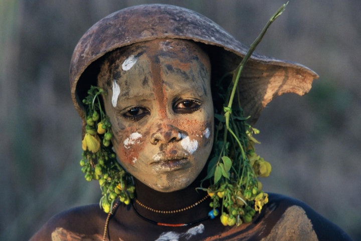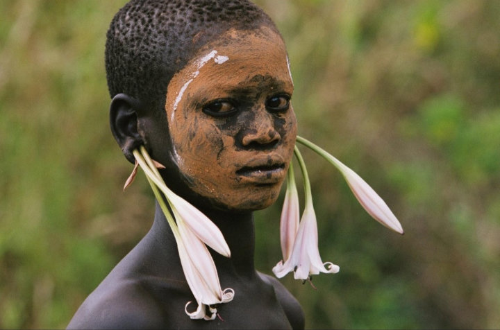 Wild flowers and dry grass are their natural head accessories and their ears are pierced at an early age to be fitted by these large round earrings.