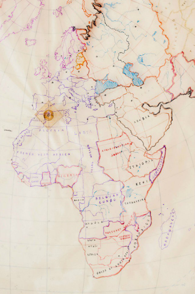 Besides the notes and drawings, there are maps present as well. The pictures below depict the airline travel routes on a map. ‘Strange’ might feel like an understatement by now.