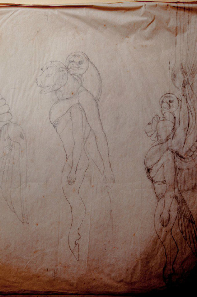 As evident from the picture above, a vortex of energy is being shot towards the alien crafts and the sky from the building’s top. Surrounding the base of the vortex, there are two smaller objects that can be decoded as alien drones, next to a couple of winged extraterrestrials that have been illustrated in the following images: