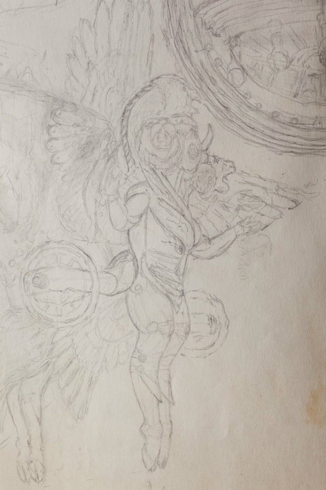 Another drawing that looks like a figure straight out of the Biblical book of Ezekiel:Image source: i.imgur.com