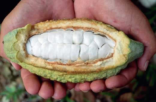 The beans from the cocoa fruit have to be fermented for three days, sun-dried and then roasted to develop the intoxicating chocolate flavour that we all loveCacao pod. Image source: www.salabucuresti.ro