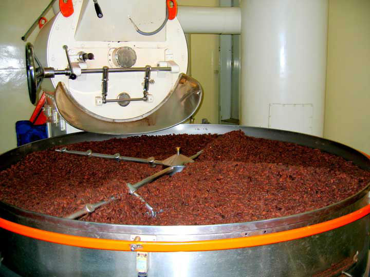 Next, the beans have to be dried in the sun evenly on both sides. This process takes considerable amount of time as well. The sun-dried beans are then roasted so that the cover of the beans can be easily peeled off and the chocolate flavour is fully developed.