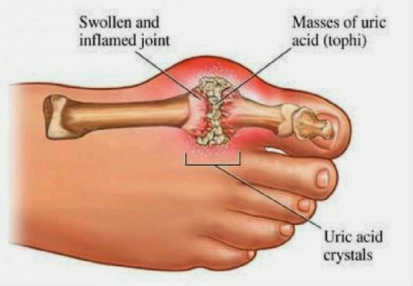 Uric acid under normal situations is filtered by the kidneys and excreted through urine. However, due to the elevated number of uric acid in the blood stream due to the carbonated drinks, uric acid crystals are formed and get deposited in one or more joints that leads to an extreme discomfort.(source)