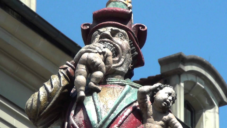 15 There is a 500-year old statue of a man stuffing baby in his mouth in Switzerland. Image Source: www.youtube.com