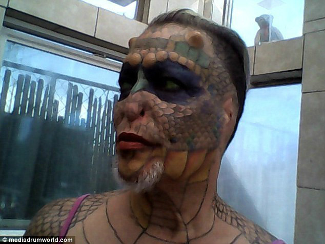 On her website, Tiamat explains: ‘I am the Dragon Lady, A pre-op M2F (male to female) transgender in the process of morphing into a human dragon, becoming a reptoid as I shed my human skin and my physical appearance and my life as a whole leaving my humanness behind.‘