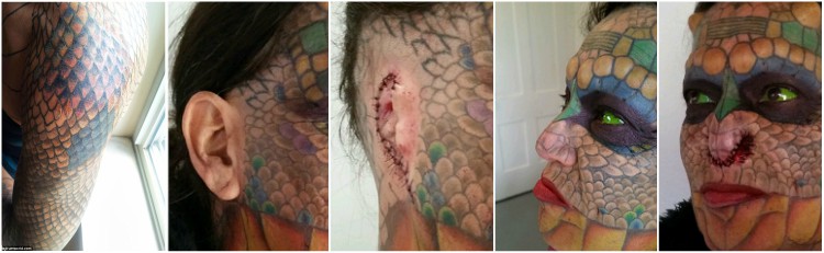 Eva Timat Medusa, transgender, and ex-banker claim to be the first and only person to have her nose and ears modified to resemble a dragon. Tiamat with her forked tongues, scales (on her body), green eyes and horned forehead calls herself as the ‘Dragon Lady.’