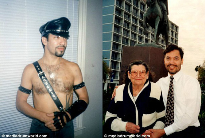 Richard Hernandez before his transition, pictured with his ‘Mama’ Amalia C. Valdez in Texas (left) and in fancy dress in 1998 (right).Image Source: mediadrumworld.com