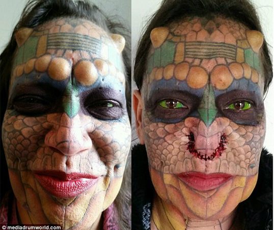 She has also got herself a forked tongue as part of her ‘changing’ process.