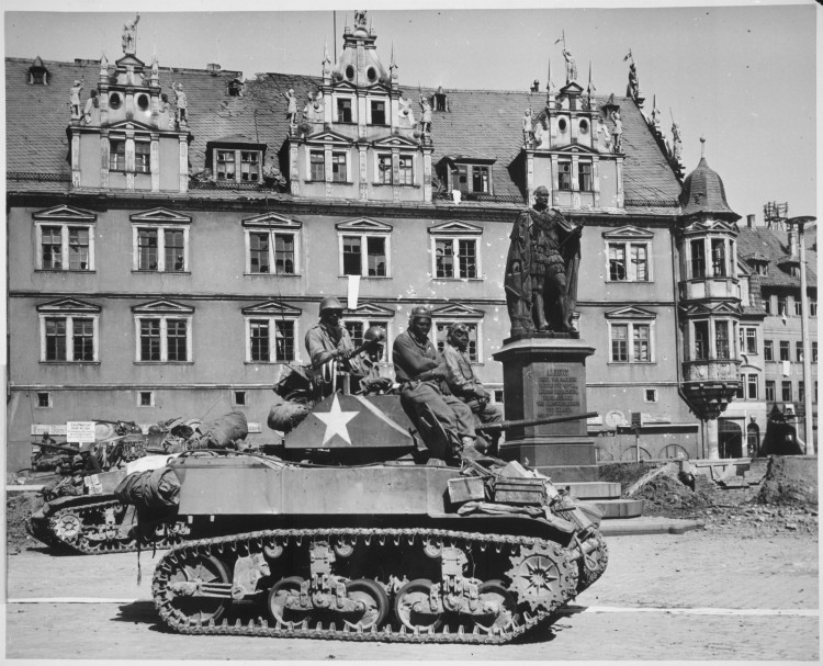 8 The crew of U.S. light tanks awaiting orders to clean up the hidden and scattered Nazi machine gun nests in Coburg,Germany on April 25, 1945.Image Source: Imgur