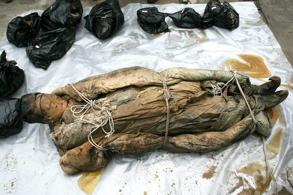 This Ming dynasty mummy was found in a water-logged coffin on a construction site in China in 2011! Researchers speculated that she had been submerged for nearly 600 years, making her body ultra-resistant to the terrestrial elements that would normally have decayed it.