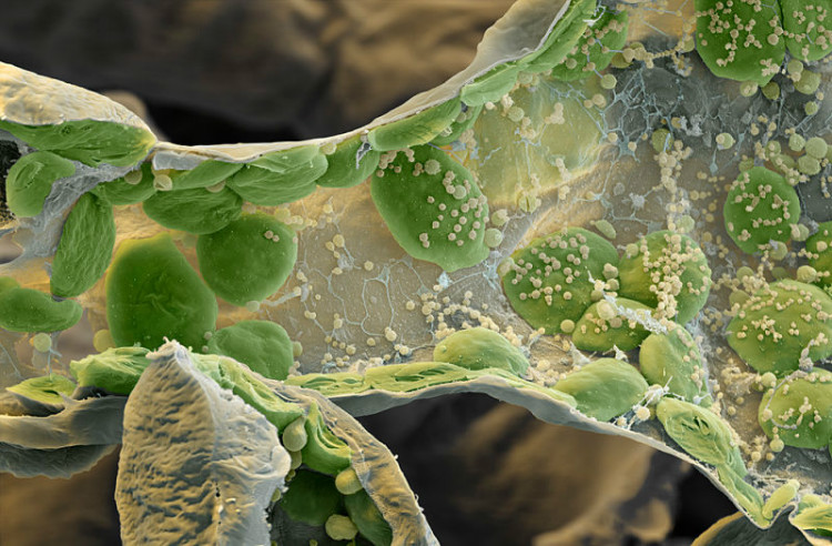Chloroplasts help plants synthesize chlorophyll. This microscopic image was taken to study the effect of an herbicide called Kixor on blocking photosynthesis at a cellular level to stop the growth of weeds. (source)