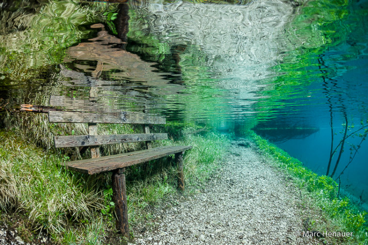 The submerged tree trunks and branches, paths, park benches and big rocks make the bottom of the lake look like a wonderland, as if there is a civilization underwater. The vision is perfected with the sun streaming down in beams from the surface of the water. The ripples and waves make waves of light on the ground making it almost a surreal experience.