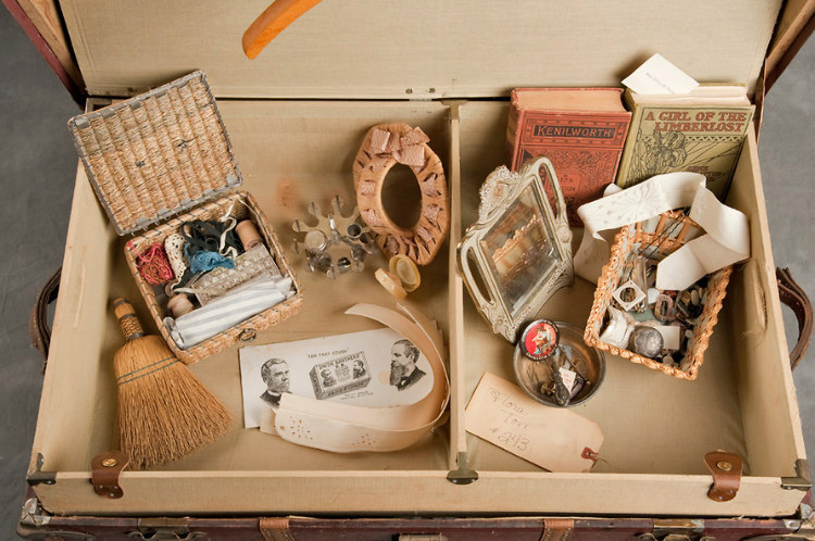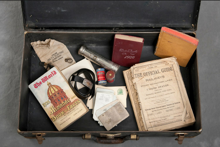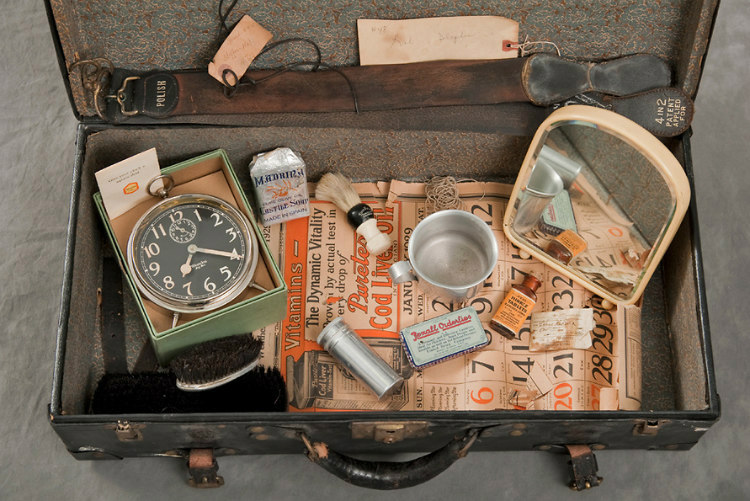 Many of the suitcases are also filled with memorabilia from their past lives. Pictures, fancy clothes, works of embroidery, perfume bottles from Paris, combs, mathematical notebooks, clocks, and many more.Image Source: willardsuitcases
