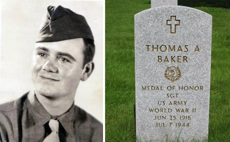 4 When he was wounded, Thomas Baker ordered his squad to leave him propped against a tree, with a pistol and eight bullets. Later, American forces found the now-deceased Baker in the same spot, holding an empty pistol, with eight dead Japanese soldiers lying around him.Image Source: honorstates, controversialtimes