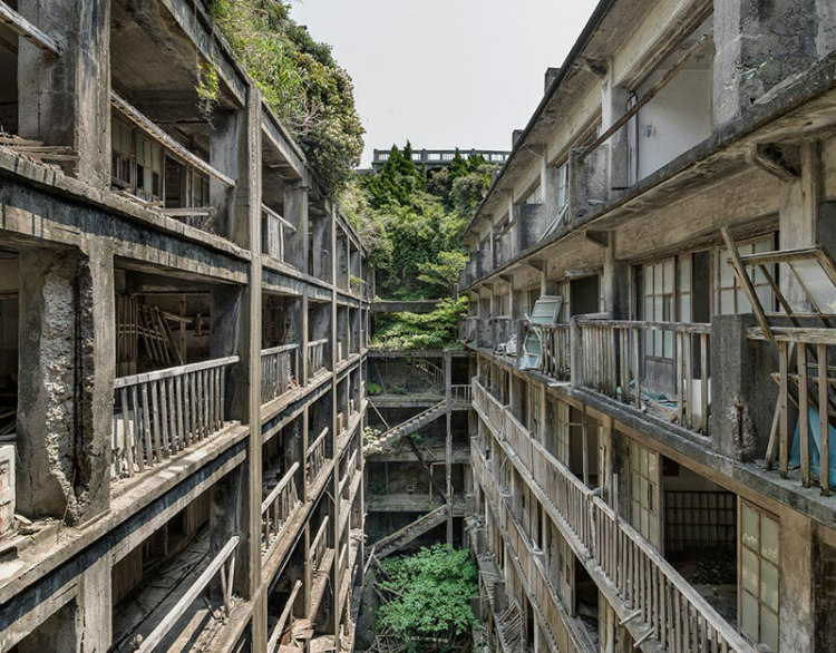 Also known as Battleship Island, Hashima Island, which had long tunnels that led to the coal mines under the ocean, was purchased in 1890 by Mitsubishi Corporation for coal mining. The island soon became a dwelling place with huge concrete apartment buildings for the miners who worked there and their families.