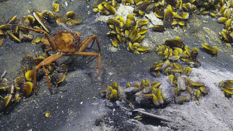 Despite the inevitable death trap that is the lake, life thrives at its borders. In a symbiotic chemosynthesis, the bacteria that live on the shells of these mussels convert the methane and hydrogen sulfide at the borders to feed the mussels. Image Source: strangesounds