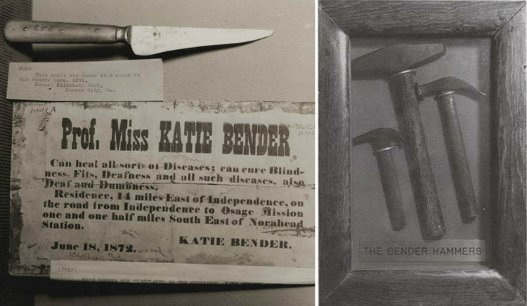 Based on the injuries, it was conjectured that the Benders would make the victim sit with his/her back to the canvas, then, John Bender would strike the skull with a hammer, and one of the women would cut the throat to ensure the death.Kate’s Healer Advertisement and the Weapons of Murder. Image Source: murderpedia
