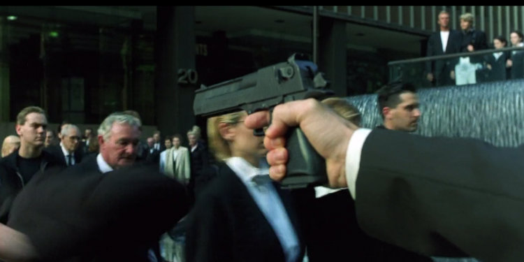 The Wachowski brothers specifically chose IMI Desert Eagle Mark XIX pistol to be carried by the agents in the movie. But the armorer advised against using them who dismissed them as âwankerâ pistols. However, they were used in the movie despite that. (source)