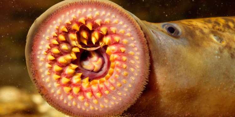 Instead of the jawed mouths of normal fish, these parasitic lampreys have openings lined with teeth in circles. The adults use their mouths to attach themselves to the target fish or other such animal. Then, they use their teeth to cut through the surface tissues until they reach blood and other body fluids. Attacking humans for blood is usually rare and doesn’t happen unless the lampreys are starved. Another interesting feature is how gas exchange is done. It is different from fishes and their respiratory tube is isolated from their mouths. Instead of taking the water through their mouths, they pump it in and out of their gill pouches.