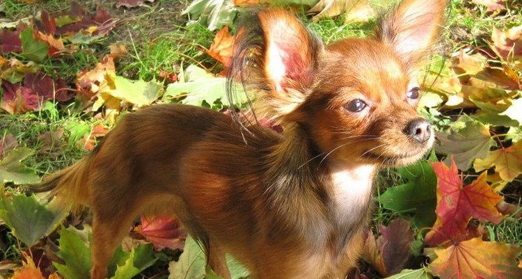 The Russian Toy is a very friendly, cheerful, and active dog breed. They are two types: smooth coat and long coat. Smooth coat Russian toys have short shiny coat while their long coat counterparts have relatively long fur in tails, ears, and legs. They are small and very delicate, and they were once associated with Russian aristocracy. They are very loyal and get extremely attached to family members.(source)