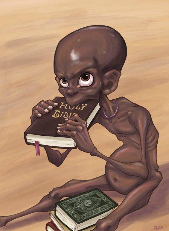 Do Not Give Me a Holy Book, Give Me a Holy Sandwich is a critique of how religious establishments use poverty to spread their faith, while what the people actually need is “real food, schools, medicines and hope”.