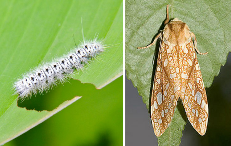 The hickory tussock caterpillar belongs to the family Arctiidae and is native in Canada from Nova Scotia to Ontario and also between the northeast and south central part of United States. Both the moths and caterpillars prefer to feed on nut-bearing trees such as hickory, pecan and walnuts, and also trees such as such as elm, oak, apple, aspen, willow, ash, and even raspberry and cornstalks. However, they do not cause any significant damage to the trees.