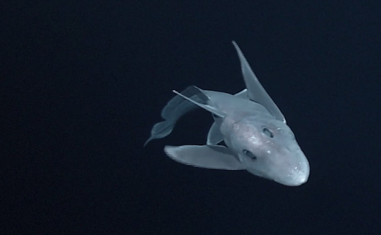 In 2009, the Monterey Bay Aquarium Research Institute (MBARI) in California sent a remotely operated vehicle (ROV) on several dives up to depths of 6,700 feet off California and Hawaii. Luckily, the camera caught a fish that looked like a new ghost shark, but not one the researchers have seen before. After consulting Marine Biodiversity Records, they were able to identify it as a pointy-nosed blue chimaera.