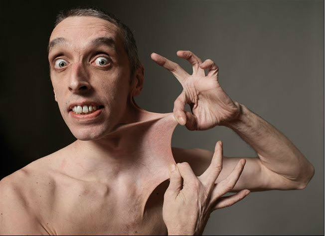 Ehlers-Danlos syndrome (EDS) is a group of different genetic connective tissue disorder which is caused due to defective collagen or collagen deficiency. It causes hyperelastic skin, hyper-flexible joints, deformed fingers, and many other painful defects.Image Source: doctorsgates.blogspot.in