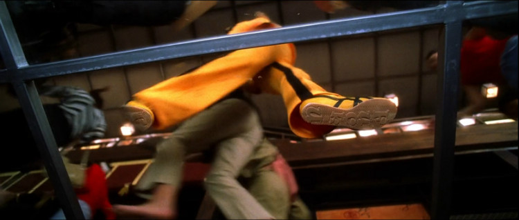 3 In Kill Bill: Volume 1, when Beatrix Kiddo (Uma Thurman) is on the dance floor of House of Blue Leaves, a low-angle shot through the glass just barely picks up the tread pattern in her sneakers. The tread’s message: “F*CK U”.Image credit: Miramax Films
