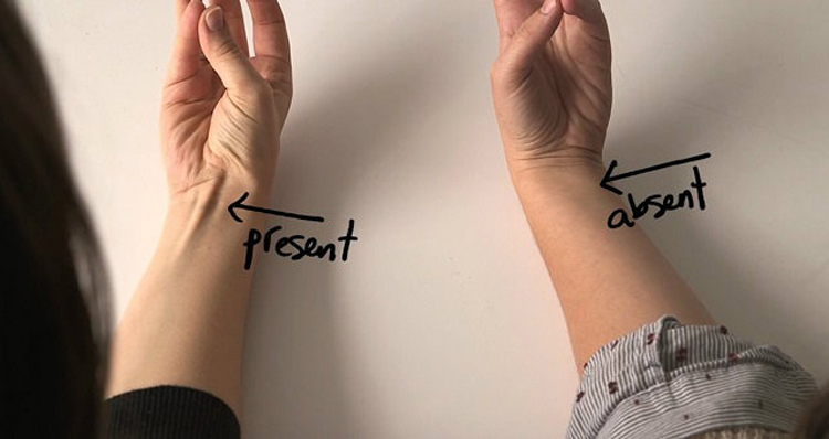 Bring the thumb and fifth finger of one of your hands together. Then, flex the fingers inwards i.e. towards your wrist. You will see a small elongated tendon-like muscle popping up in the center of your wrist. This small popped up muscle is known as palmaris longus. If flexing your wrist in the above way does not produce a visible muscle, then you are among the rare 14 percent of people in the world who doesn’t have the PL muscle.