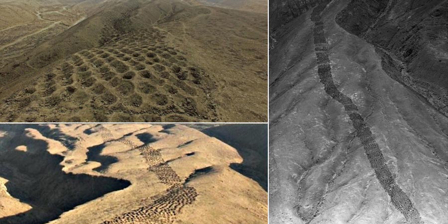 Also known as Monte Sierpe (Spanish for Serpent Mountain) or Cerro Viruela (Smallpox Hill), the Band of Holes are a series of 5,000 to 6,000 stone-lined holes. They stretch a distance of 1.5 km and a width that ranges between 14 to 21 meters, and are located in Pisco Valley on the Nazca Plateau, Peru. Some archaeologists hypothesized that these were graves, defensive positions, or storage sites built during the Inca Empire (1438-1533). Another recent hypothesis suggests that they could be a means to measure produce given to the Inca state as a tribute.(source)