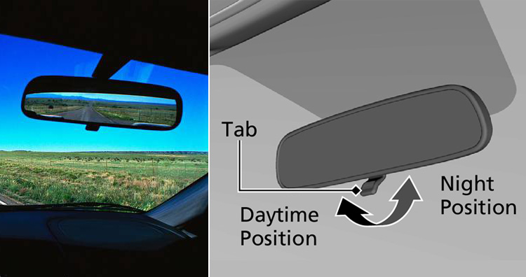 Sometimes, while driving at night, we find our vision compromised by crude high beams from someone driving behind us. It can also happen during the daytime due to sun’s glare. To avoid getting blinded in such situations, we can switch our rear view mirror in night mode. In your car, you will find a little tab under the rear view mirror. Flick it and a ghost image will appear which will reduce the glare.(source)
