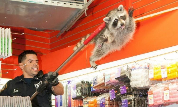 A bushy tailed raccoon once broke into a Bronx beauty shop and created a ruckus. When the owner of the shop opened the shop at 8:30 a.m., she saw chunks of ceiling and wigs on the ground. Looking at the ceiling she discovered the crafty critter. So, she immediately dialed 911. Four cops armed with a trap lined with marshmallows and a tranquilizer gun showed up.