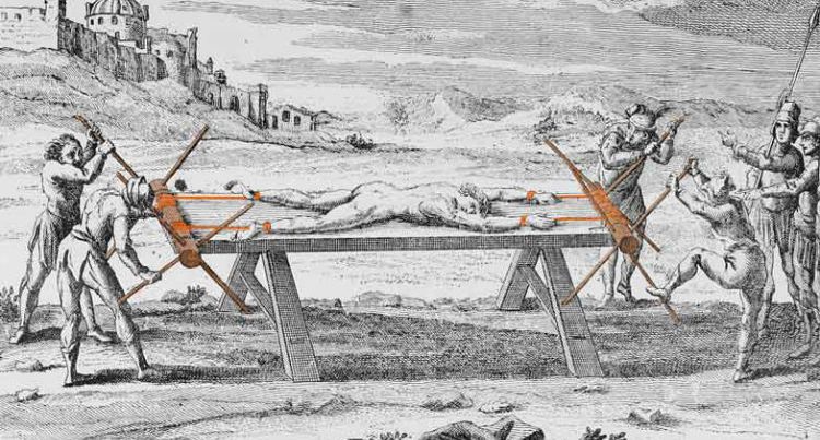 This torture device was used to fasten the victim’s ankles to a roller and the wrists were chained to another. Next, a handle and ratchet mechanism were attached to the rollers and were used to very gradually increase the tension on the chains, inducing excruciating pain.Image source: howstuffworks.com