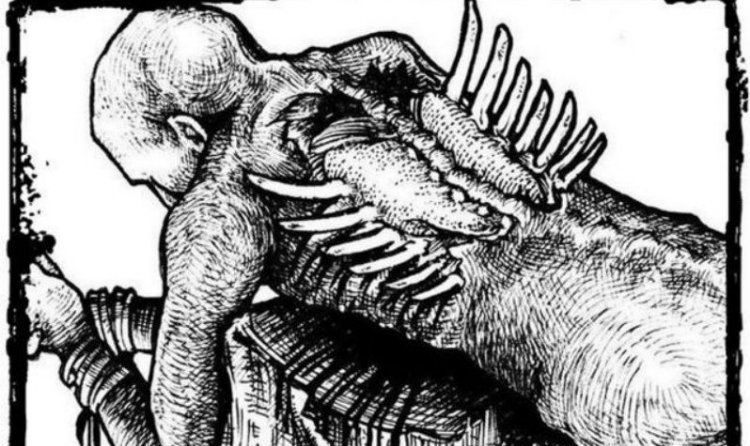 In this torture method, a cut was made in the abdomen between the ribs and the ribs were then pulled open to pull the lungs out resembling the wings of a bloody eagle. Image source:emgn.com