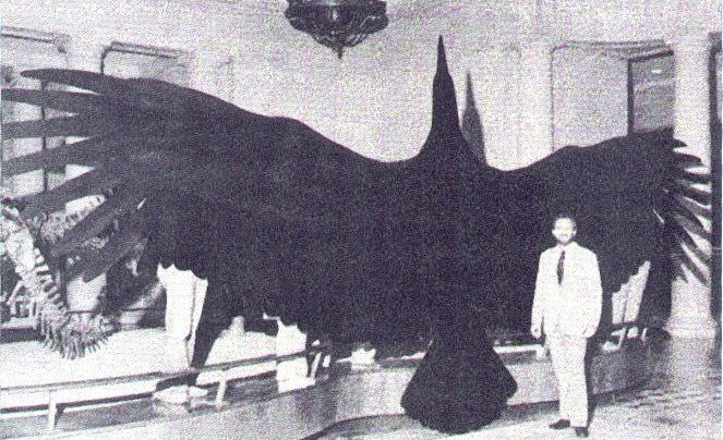 Teratornis was a huge North American bird of prey. Fossils of more than one hundred individuals have been found in California, Oregon, Arizona, Florida, and southern Nevada. With a wingspan of eleven to twelve feet, this prehistoric bird stood thirty inches tall.