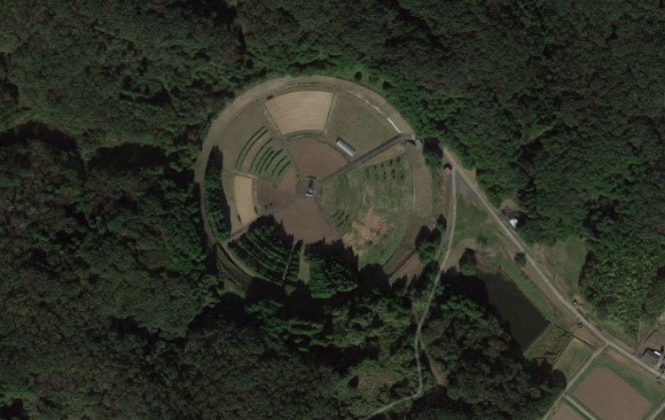 Gamma gardens were usually five acres in size and were arranged in a circular pattern with a retractable radiation source in the center. Plants were usually laid out like slices of a pie, each plant receiving varying amounts of radiation along the radius.Image Source: GoogleMaps