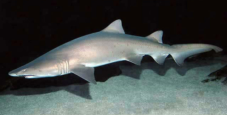 The embryos of sand tiger sharks undergo a process known as intrauterine cannibalism, or embryophagy or adelphophagy, which literally means to “eat one’s brother.” The two uterine horns contain as many as 50 eggs that get their nutrients from the yolk. When one of the eggs reach around ten centimeters (four inches) in size, it starts to consume the all other eggs, both fertilized and unfertilized, in the embryo until its the only one left. This remaining embryo grows for eight to twelve months, after which a one-meter (3-foot) long baby shark is born following a very long labor. The sand tiger sharks have very low reproductive rates compared to other sharks as they give birth only once every two or three years.(source)