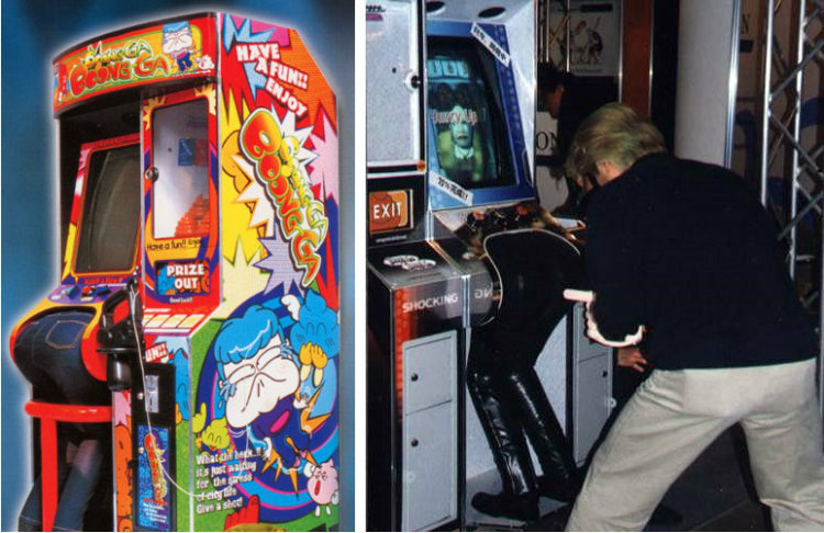 This arcade game has a model of a human butt built into the front, and a plastic finger that players can use to poke at it. Players can either spank the butt or poke the anus to punish an on-screen character.