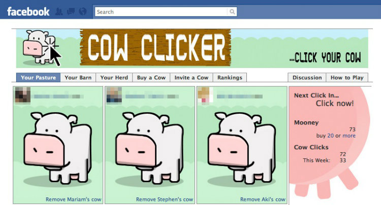 Ian Bogost was critical of social games like Farmville for offering no artistic value and instead focusing on getting players to pay money to progress. After seeing Farmville win the award for âBest New Social/Online Gameâ at the Game Developersâ Conference, Bogost decided to make a game that showed how shallow social games had become. With Cow Clicker, he boiled down the game mechanics of Farmville to their simplest form, âyou click on a cow, and thatâs all you do.â