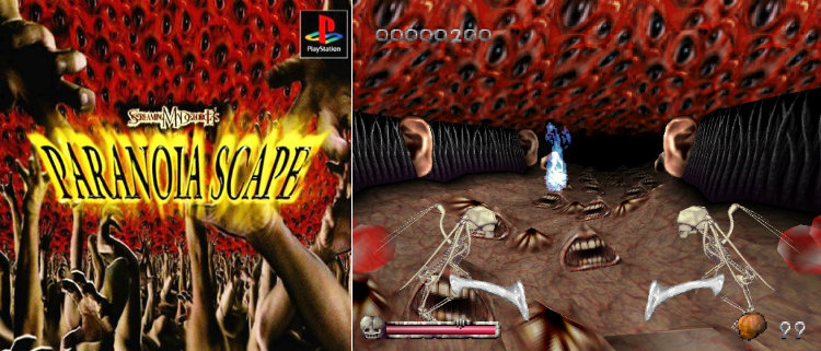 The game has an unusual and creepy setting due to “Screaming Mad George”âs involvement. Screaming Mad George is the nickname of Joji Tani, a special effects artist whoâs known for creating surreal and gory effects. He worked on films including Predator, Nightmare on Elm Street 3, and Big Trouble in Little China. His unique style shines through in Paranoiascape‘s unusual environments such as a level where the floor is covered in human mouths and the ceiling is made of eyeballs.