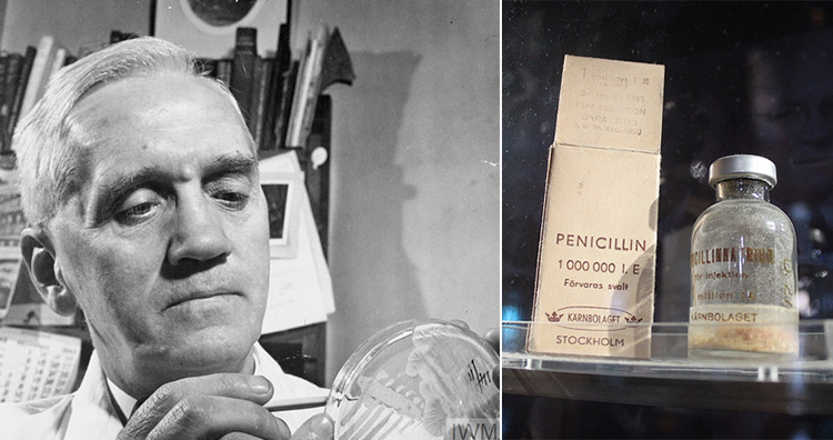 3 In 1928, Dr. Alexander Fleming discovered penicillin while researching the summer flu in the basement of his laboratory. A Petri dish containing Staphylococcus (bacteria) was mistakenly left open, and as a result got contaminated by a blue-green mold which turned out to be lethal for the bacteria’s growth.Image credits: Ministry of Information Photo Division Photographer/wikimedia, Solis Invicti/flickr