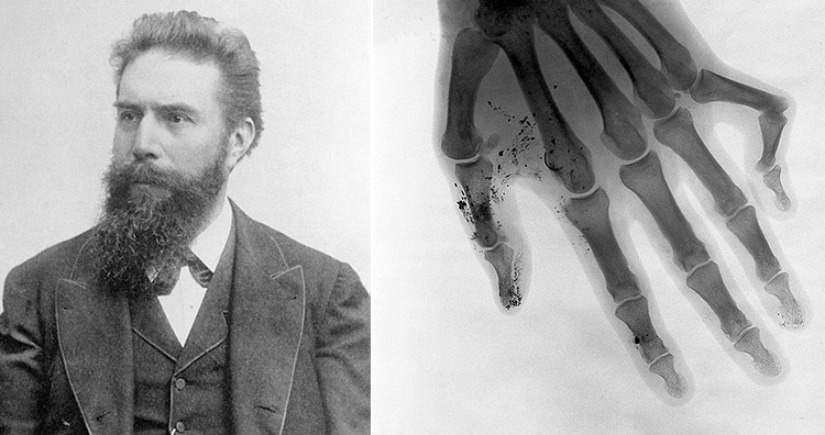 X-rays, an indispensable tool in the medical world, were discovered by Wilhelm Rontgen while studying cathode rays being emitted from Lenard and Crookes tubes (electrical discharge tubes). While experimenting in a dark room, Rontgen removed all the air from the tube, filled it with a special gas and passed high electric voltage through it which produced fluorescent light. He then covered the tube with thick black cardboard and placed a screen covered with barium platinocyanide at a distance. On doing this, he noticed some rays that could pass through the thick cardboard and illuminate the screen. Rontgen named these rays as âx,â owing to their unknown nature. X-rays proved to be immensely useful in the medical world when Wilhelm managed to capture the image of his wifeâs hand on a photographic plate using x-rays. Though many scientists had encountered these rays prior to Rontgen, he was the first one to study them systematically and received the Nobel Prize in Physics for it. (1,2)