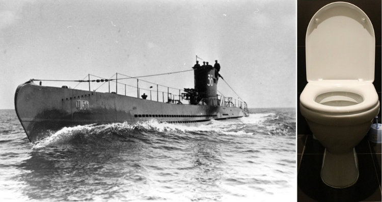 4 In 1945, a German U-boat began flooding due to the captainâs improper use of a newly designed toilet. It was forced to surface and was bombed by British patrol planes. The crew had to abandon ship.Image source: 1,2