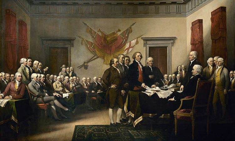 The United States Declaration of Independence was signed on July 4, 1776.Image Source: commons.wikimedia.org
