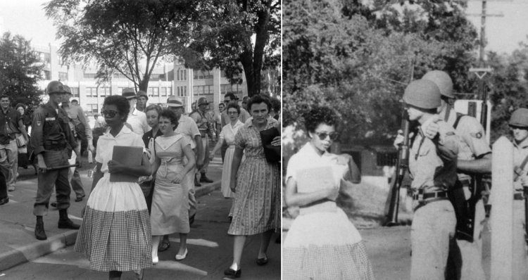 When Eckford tried to walk through the crowd, National Guard soldiers blocked her path. The mob surrounded Eckford and threatened to lynch her, and she ran away. The rest of the “Little Rock Nine” was also blocked from entering the school.Image source: Time & Life pictures