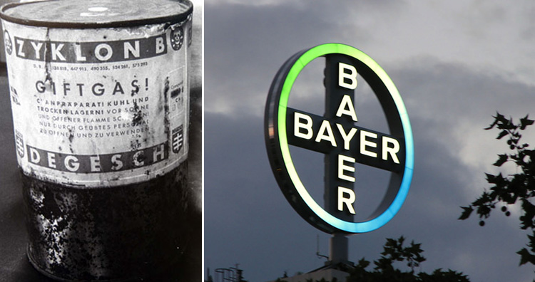Despite being a large pharmaceutical company, Bayer was part of IG Farben which created Zyklon-B gas canisters. These gas canisters were loaded into the same gas chambers that killed millions of Jews during the Nazi regime. The man who invented the gas, Fritz Haber, was half Jewish but decided to renounce his faith just so he could get on the good side of Hitler and his men.