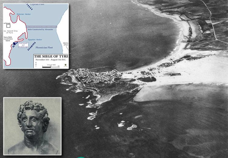 When he had his men build the causeway, the defenders kept attacking them. He then had two large artillery towers covered in rawhide to protect it from fire arrows, to help in overthrowing the defenders. They, in turn, sent an old ship which they had set on fire and had filled with dried branches, pitch, sulfur, and cauldrons of oil. So, Alexander mustered naval forces from all the Phoenician cities he previously conquered. The king of Cyprus sent 120 more galleys to his aid, making a total of 223 galleys under his command. During the fight, 6,000 Tyrian men died, 2,000 more were crucified, and the rest of the citizens sold as slaves. The island of Tyre is now permanently connected to the mainland because of the causeway.(source)