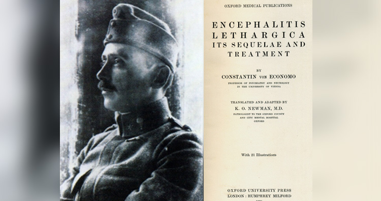 Image of Von Economo who first described the disease and his book. Image credit: 1,2