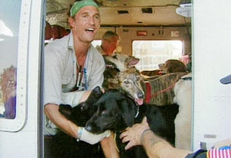 During the aftermath of Hurricane Katrina, McConaughey joined the relief efforts in the southern states of the US to help save stranded animals including several dogs, cats, and hamsters. In another incident, he spotted a few kids in Sherman Oaks, California, who were covering a cat with hairspray to set it on fire. He leaped out of his car, snatched the cat away from them shouting at the gang and took it to an animal center.(1, 2)